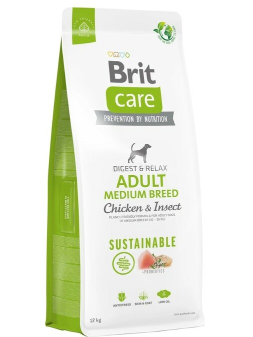 Špičková kondice, zdravé zažívání a lesklá srst. To vše vašemu čtyřnohému parťákovi zajistí kompletní krmivo Brit určené pro dospělé psy středních plemen (10–25 kilogramů). Vašemu psovi zachutná díky obsahu kuřete a hmyzu, jež obsahují nutričně bohaté bílkoviny s pozitivním účinkem na svaly a tkáně. Srdečník snižuje působení stresu, zatímco omega-3 a omega-6 nenasycené mastné kyseliny dodají lesk psí srsti. Granule jsou bezlepkové a jsou vyrobeny s ohledem na životní prostředí.