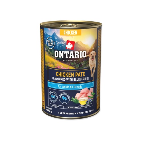 Ontario konzerva Adult kuřecí paté s příchutí borůvek 400 g