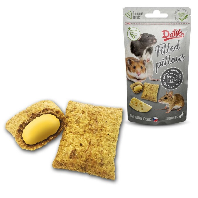 Lahodný pamlsek ve formě křupavých polštářků plněných sýrovou náplní, který je ideální jako odměna nebo zpestření každodenní stravy hlodavců. Díky praktické velikosti se snadno dávkuje a je vhodný pro pravidelné, ale střídmé podávání.